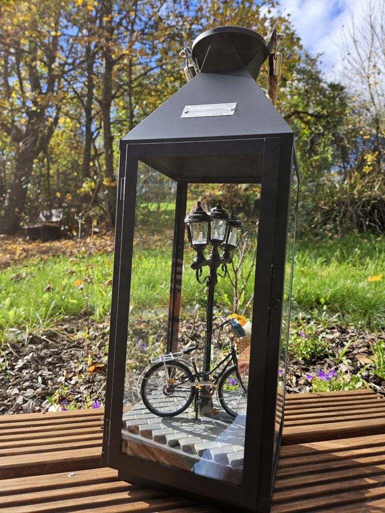Laternendiorama mit Licht, batteriebetrieben – eine Laterne in der Laterne