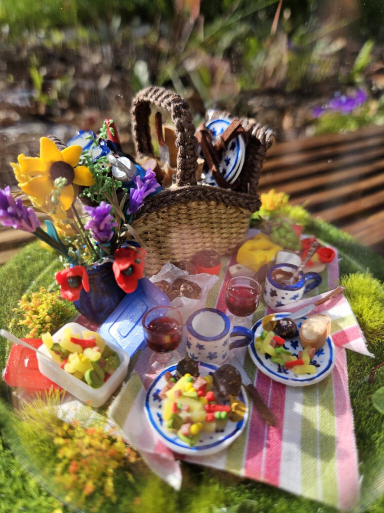 Angefangen hat dies als junge Erwachsene. Ich war fasziniert, als ich eine Großtante besuchte, die als erwachsene Frau ein Puppenhaus mit feinsten Miniaturen hatte. Sie hat mir erzählt, dass es Miniaturbausätze für Möbel gibt. Voller Eifer habe ich ein großes Puppenhaus gebaut und eingerichtet. Die Möbel noch aus Bausätzen gebaut, die dekorativen Miniaturen meist gekauft. Jedoch hatte ich schon damals angefangen, kleine Accessoires selber zumachen. Dann bekam ich Kinder, der Alltag lies dies Hobby nicht mehr zu. Irgendwann war es „peinlich“, als Erwachsene ein Puppenhaus zu haben. Beim Umzug habe ich das Haus nicht mitgenommen, wo es geblieben ist, weiß ich nicht mehr.