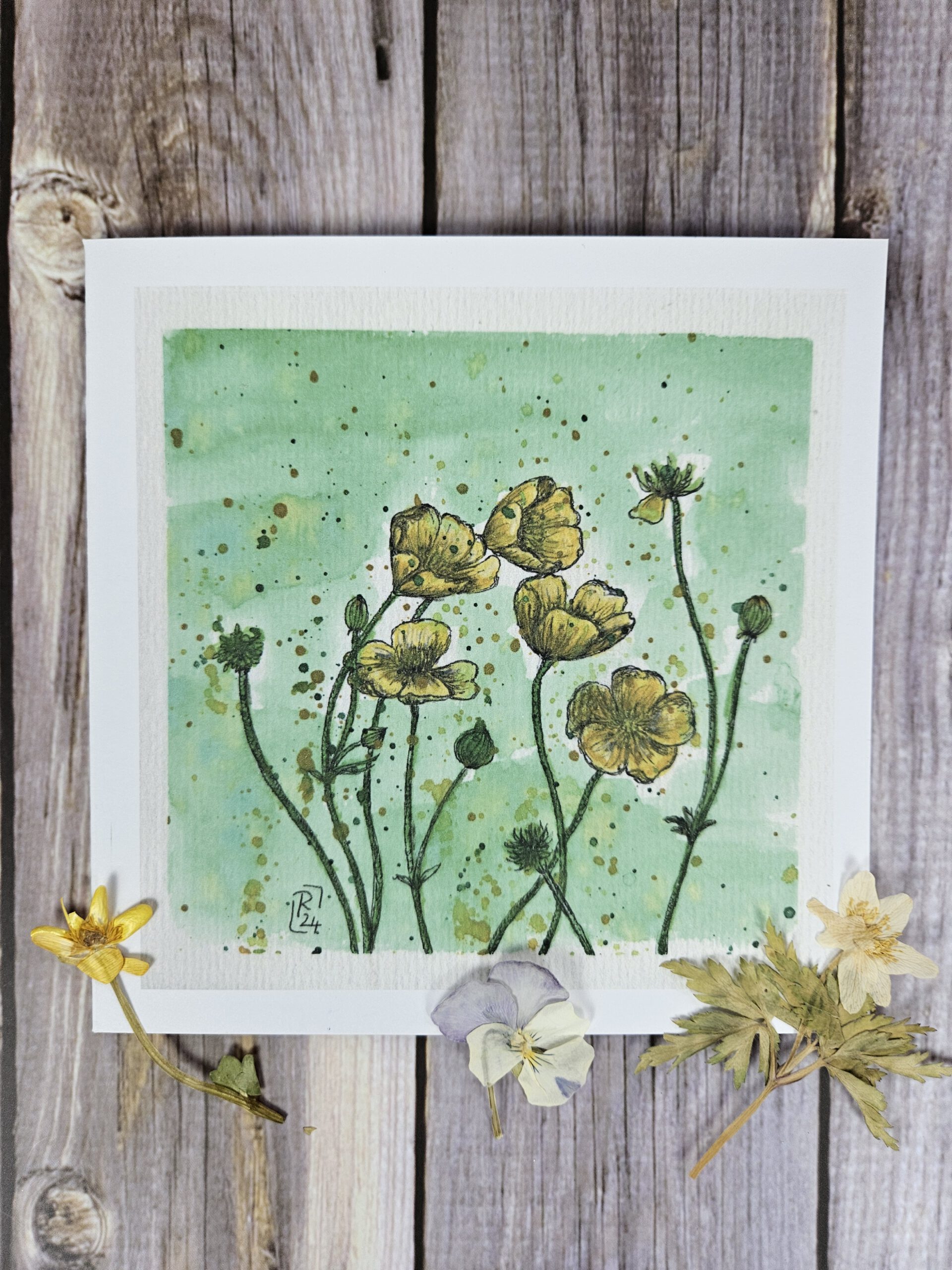 Klappkarte „Butterblume“ Maße: 14 x 14 cm inclusive passendem weißen Briefumschlag Copyright (c) by Ruths Schätze, alle Rechte vorbehalten